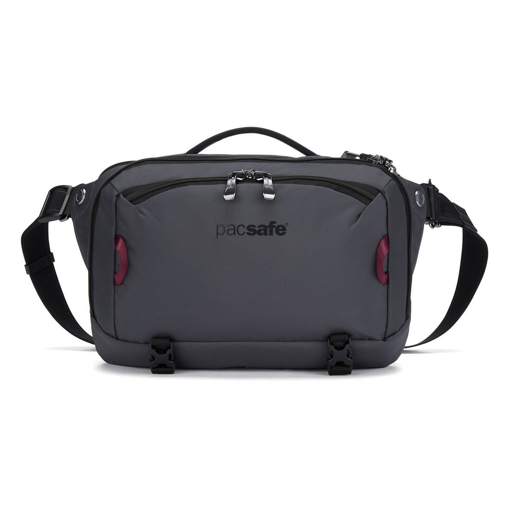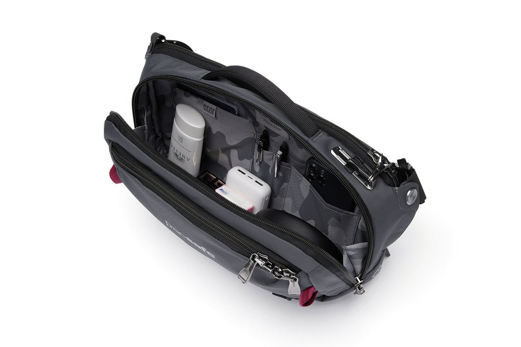 Made for the modern explorer, this anti-theft hybrid crossbody adapts to your journey—wear it as a sling pack or a crossbody bag with ease. Built-in rotation buckles ensure it adjusts naturally to your movement, while advanced security features like RFIDsafe™ pockets, a PopNLock security clip, self-locking zippers, and cut-resistant materials give you total peace of mind on the move. A dedicated padded back compartment fits up to a 13” MacBook Pro, while the main compartments keep your daily tech and travel gear organized and accessible. Whether you're navigating airports or city streets, this compact yet spacious 10L pack is designed to go wherever you go, sustainably made from 16 recycled plastic bottles and finished with 100% PFC-free water repellency.