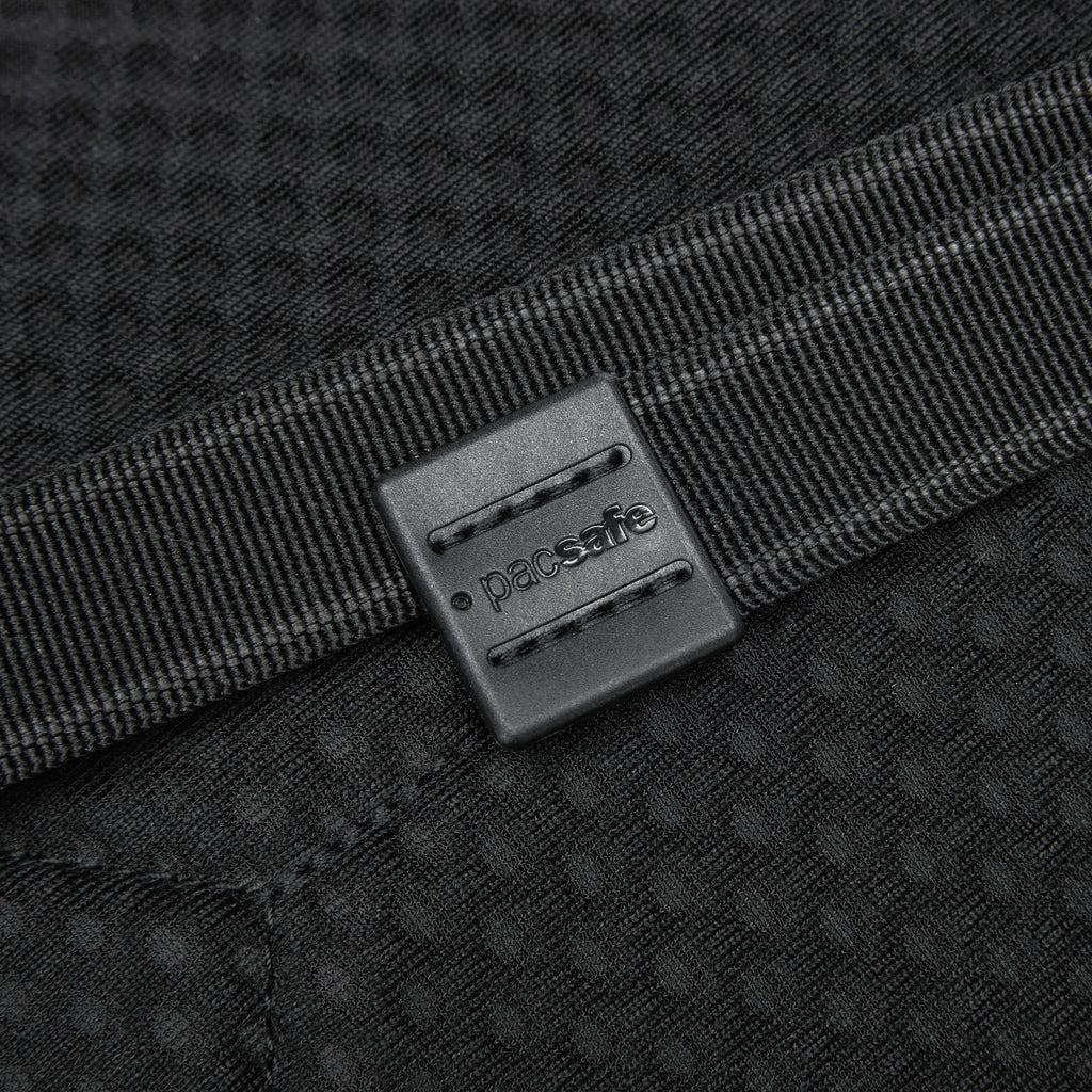 - Cut-resistant anchor strap locks around a fixed object to protect your bag